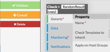 The form displayed is the same as the form used to create a new Check. All fields are filled with Check properties. Once changes have been made, configuration of the Check must be saved Cancel button revert all changes to precedent configuration. | |
