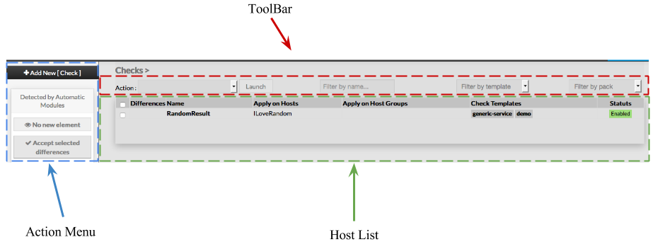 | To modify properties of a check, first go on the Checks page, from the Main menu, and then click on the check name you want to modify. | |