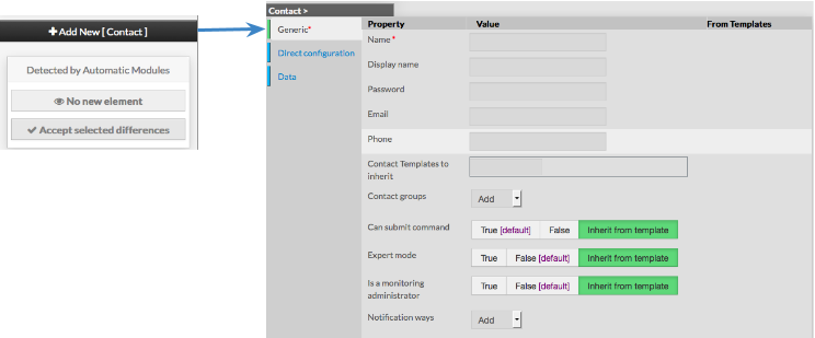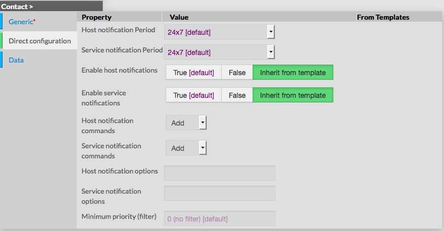 Ce formulaire est composé de plusieurs onglets correspondant à des catégories de propriétés : Générique Configuration directe Données