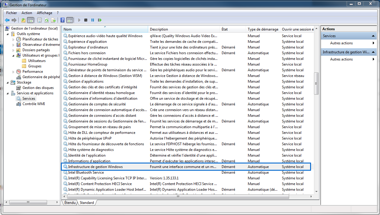Veuillez ouvrir la console des services (services.msc) et redémarrez le service gérant la partie WMI : "Infrastructure de gestion Windows".