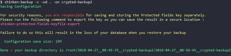 Le backup est tout de même effectué mais vous devez effectuer une sauvegarde de la clé en utilisant la commande shinken-protected-fields-keyfile-export avant toute autre opération impliquant un changement de clé.
