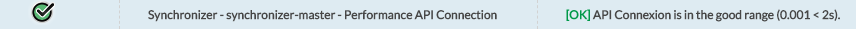 | Synchronizer - $KEY$ - Performance API Connection | Vérifie la latence de connexion au Synchronizer et ses performances |