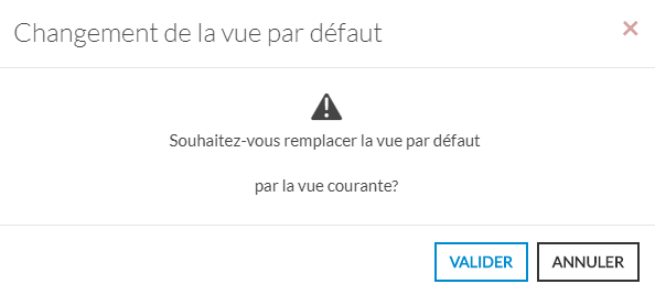 Cliquez sur l'icône pour définir votre vue courante comme vue par défaut. Une pop-up vous demandera confirmation pour effectuer le changement: