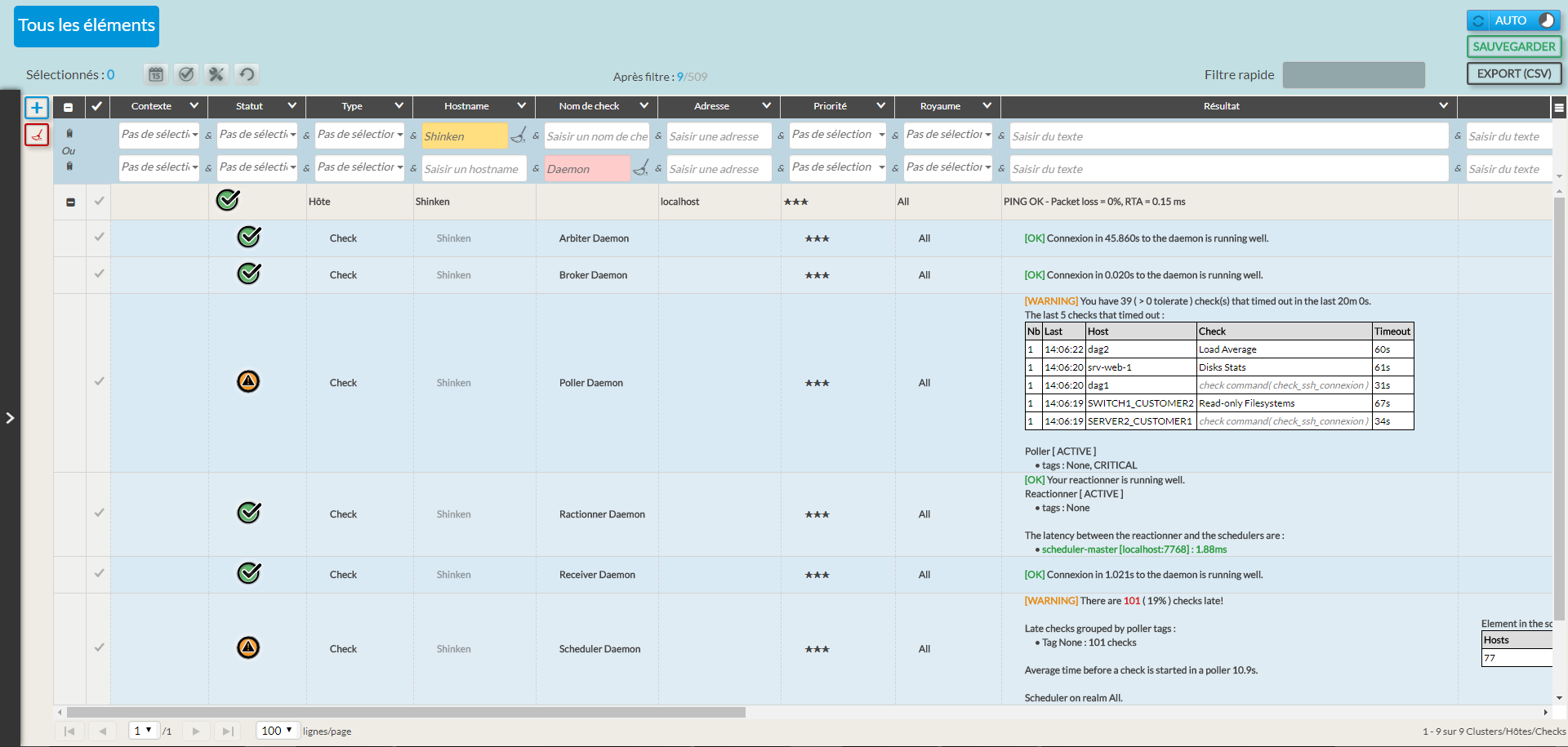 • Tous : hôtes, checks, clusters, le tout sur une page!