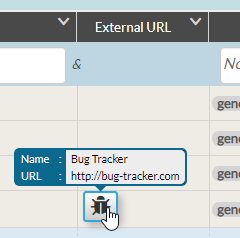 The External URL column displays a button for each URL configured to open the link of the External URL list.