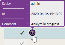To display the information of an account, use the mouse to hover over the context to display the tooltip containing the name of the author, the comment and the date.
