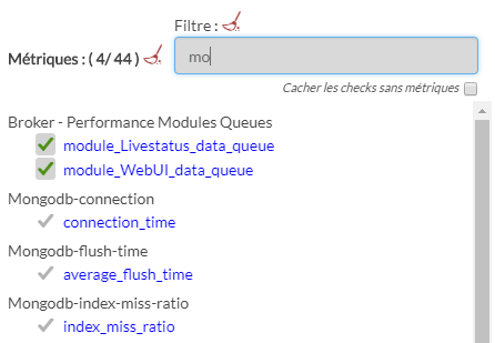 Certains checks (dépendant de leur nature et de leur configuration) vont mettre à disposition des métriques.