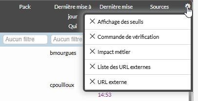 - coche : La coche signale que la colonne est "affichée". Cliquer retirera la colonne.