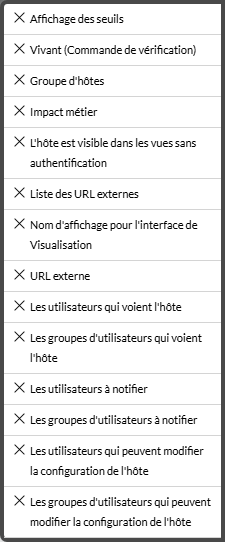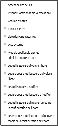 - Peut modifier le contenu de l'affichage des seuils ( Hôtes, Cluster, Checks et Modèles )