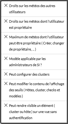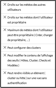 - Droits sur les météos dont l'utilisateur est propriétaire