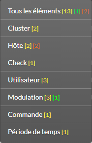 Ce menu donne le nombre d'éléments avec les statuts :