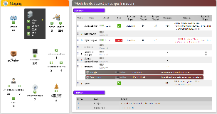 Pour chacun des deux tableaux, chaque ligne permet d'accéder directement à la configuration correspondante en cliquant sur le nom de la source ou du tagger.