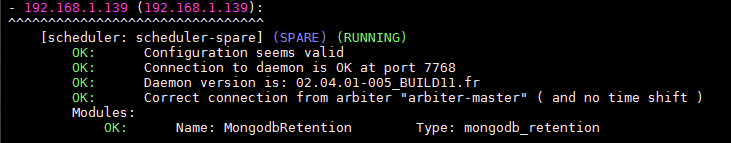 On vérifie d'abord que le démon Scheduler est activé (sur la machine du scheduler):$ shinken-daemons-list
