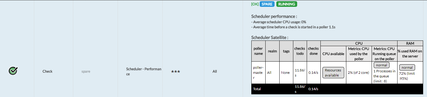 Les checks du pack Shinken permettent de superviser les démons Shinken. Ces checks affichent une pastille spare lorsque le démon supervisé est un démon Spare.