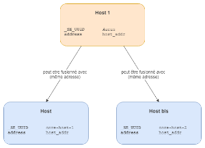 - Si "Host 1" doit être fusionné systématiquement avec "Host" ou "Host bis", il faut lui mettre le même SE_UUID que l'élément avec lequel il doit être fusionné. Une autre solution, si applicable, peut être de ne pas répartir la définition d'un même élément dans plusieurs fichiers de configuration pour éviter les problèmes de ce type.