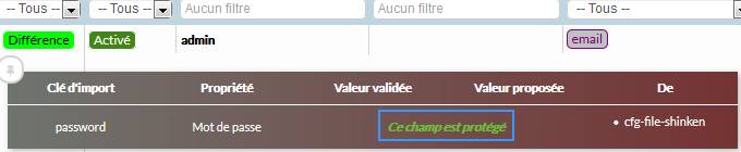Veuillez utiliser la commande shinken-protected-fields-encryption-disable . Il est nécessaire de redémarrer le Synchronizer pour prendre en compte cette opération.