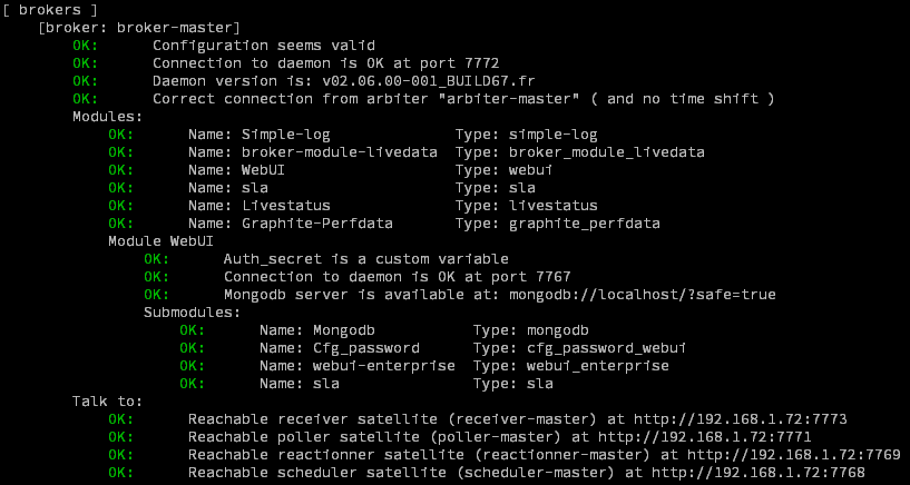 La commande shinken-healthcheck sépare sa vérification en plusieurs parties qui sont décrites dans les sections suivantes.