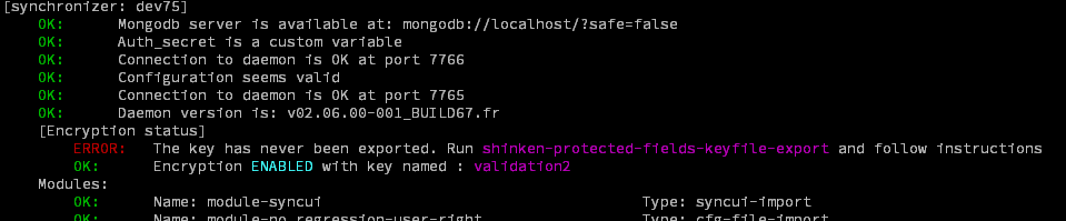 -g--globalEffectue une vérification complète des démons (doit être lancé depuis la machine comportant l'Arbiter et le Synchronizer). Par défaut sur une machine avec un Arbiter et un Synchronizer, un Health Check global est effectué sauf si un Health Check local est explicitement demandé.
