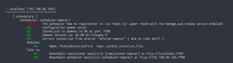 En cas de mauvaise configuration de daemons et/ou de royaumes, un scheduler peux ne pas être défini comme cible d'un autre daemon (poller/reactionner/broker).