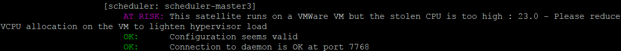 Si c'est le cas, une ligne sera ajoutée dans la sortie du "shinken-healthcheck" et précisera que votre satellite fonctionne sur une architecture VMWare.