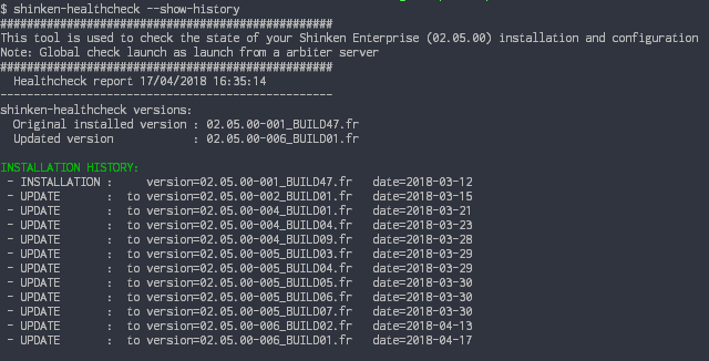Affiche l'historique des installations et donnés de Shinken Entreprise sur ce serveur