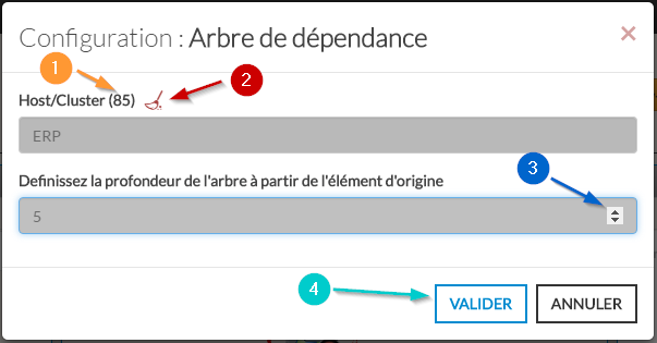 • Cliquer sur cette vignette centrera automatiquement l'arbre de dépendance sur cet élément.