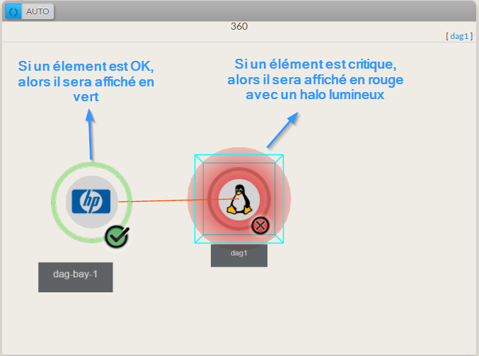 Depuis l'hôte choisi, il présente en 3D toutes les dépendances jusqu'à 10 sauts ( liens entre les éléments définis dans la définition de l'élément).