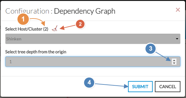 - Le nombre total d'hôtes et de clusters apparaîtra près de "Sélectionner Hôte/Cluster" (1).