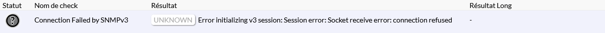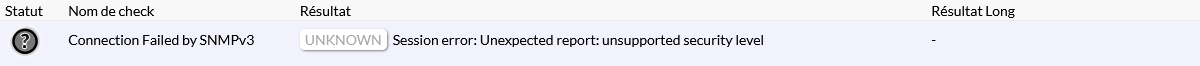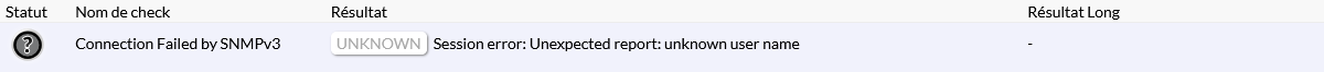 Cette erreur peut intervenir lorsque : L'utilisateur SNMP v3 utilisé n'existe pas.