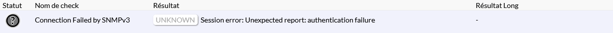 Cette erreur peut intervenir lorsque : L'authentification SNMP v3 a échoué.