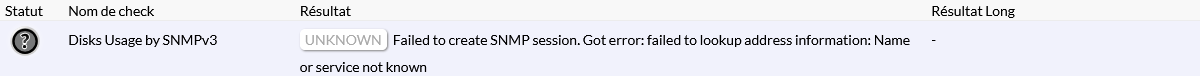 UNKNOWN – Failed to create SNMP session. Got error: failed to lookup address information: Name or service not known
