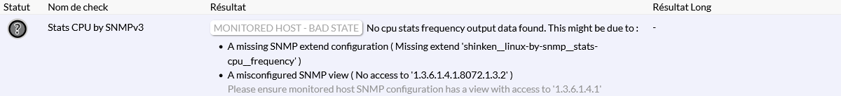 Erreurs de configuration de l'hôte à superviser ( communes à tous les checks )