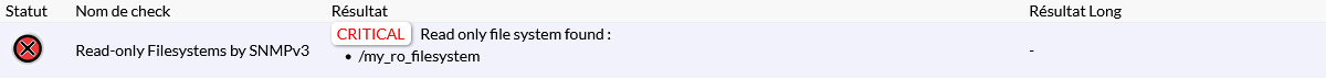 Le check Read-only Filesystems by SNMPv3 va vérifier si l'une de vos partitions montées est en lecture seule.