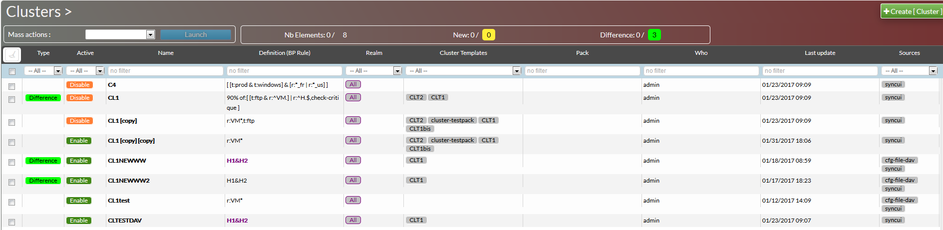 L'interface propose un certain nombre d'actions de masse. Cela permet de gérer un grand nombre d'éléments sans avoir à effectuer les actions élément par élément.
