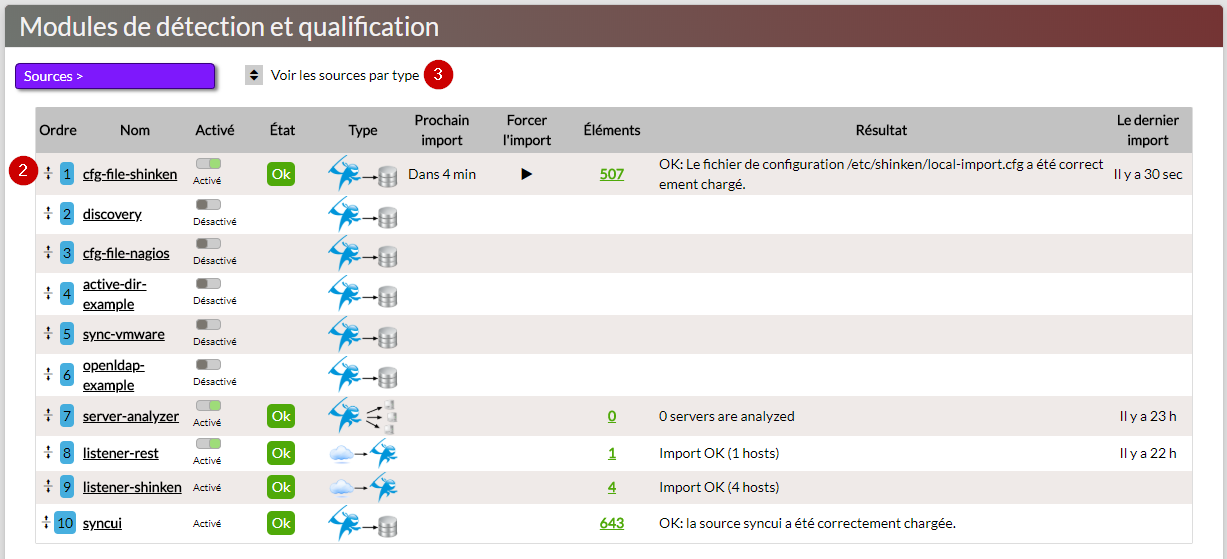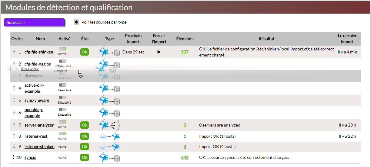 La liste de sources visibles dans l'interface est contrôlée par le fichier de configuration (fichier cfg) de votre Synchronizer, dans le répertoire /etc/shinken/synchronizers/.