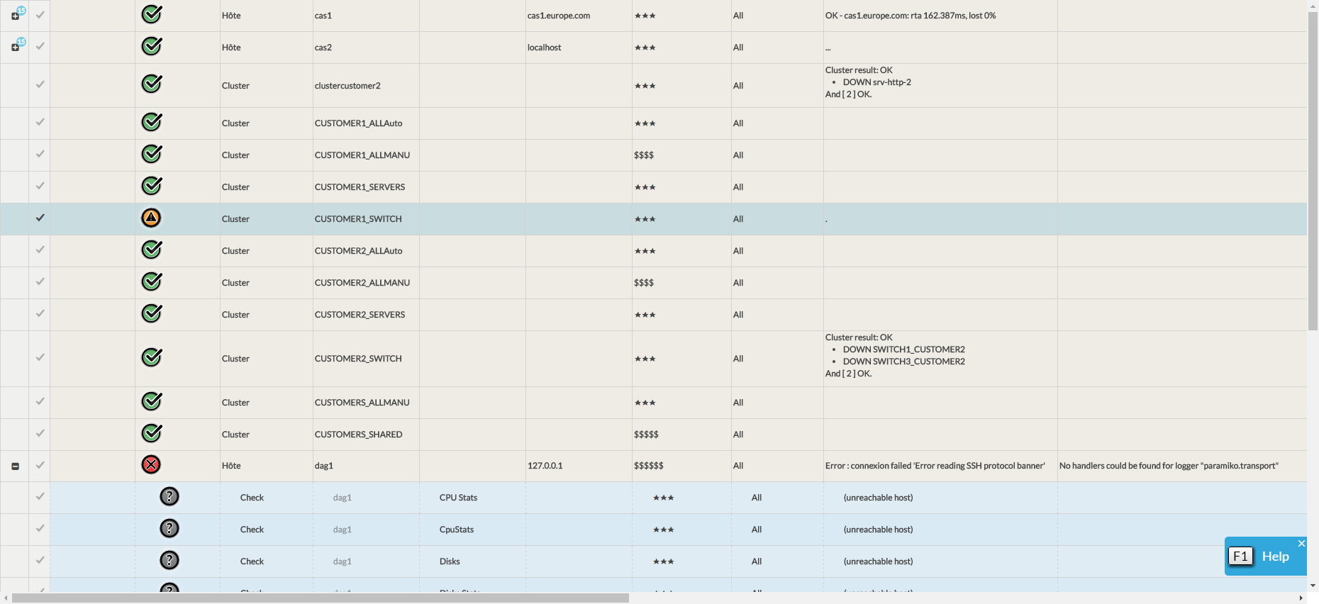 pour afficher tous les checks de l'élément.