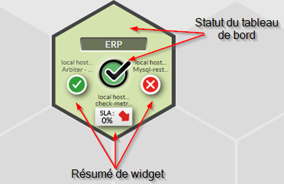 • L'icône centrale indique le statut et contexte du tableau de bord.