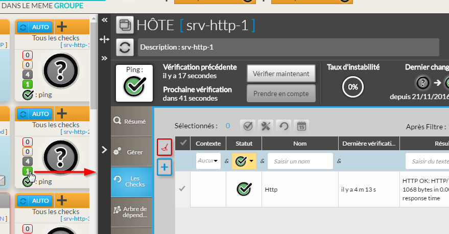 Si le statut se rapporte à un élément, cliquez sur le widget ouvrira la vue détail proposant des informations sur l'élément sélectionné (voir le chapitre Vue détaillée d'un hôte ).