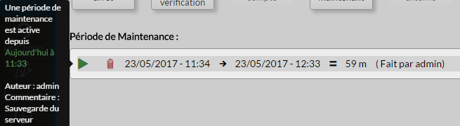 • Pendant la période de maintenant l'élément passe en contexte "downtime".  (voir Statut & Contexte)