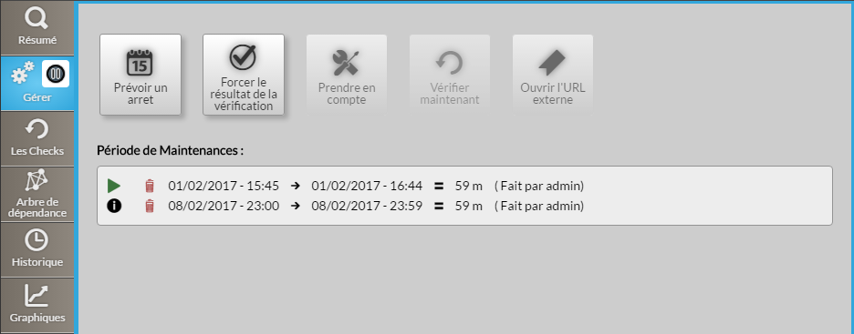 Ce bouton permet de vérifier le statut de l'élément sans attendre la prochaine vérification.